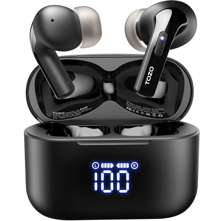 Enjoy the convenience of the LED digital display, immerse yourself in crystal-clear communication with dual-mic ENC noise cancellation, and stay powered up with wireless charging. With an impressive 48.5-hour battery life and IPX8 water resistance, the TOZO T20 earbuds are your perfect audio companions for seamless, versatile listening.