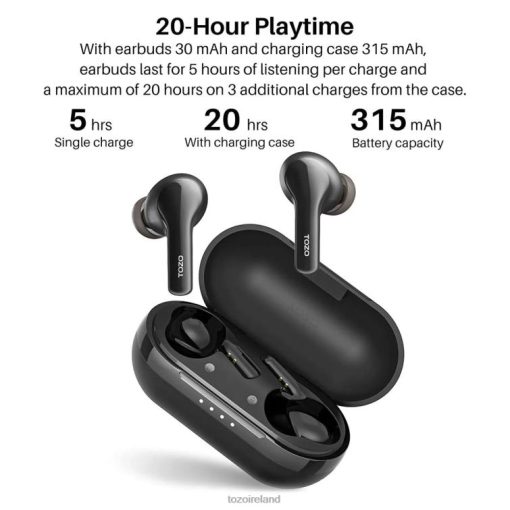 The surface and angle of TOZO A2 earbuds’ in-ear parts have been polished and refined repeatedly to achieve a balance between beauty and fit, which makes them comfortable to wear. In the meantime, a single earbud weighs only 3.7g, making it as light as a feather in your ear.