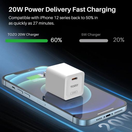 - High-Efficiency USB C Wall Charger:Powerful 20W PD output for fast charging. Compatible with iPhone 12/13 series, reaching 50% in just 27 minutes.
